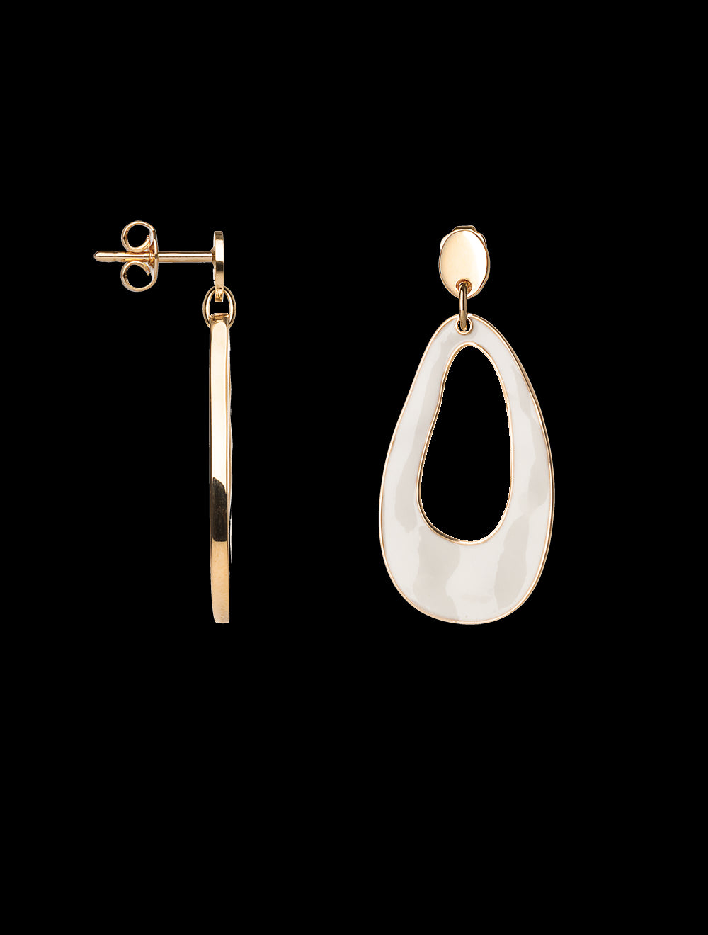 Boucles d'oreilles pendantes Porcelaine en plaqué or 3 microns, avec de la laque blanche. Livraison dans son pochon et sa boite d'écrin Saunier.