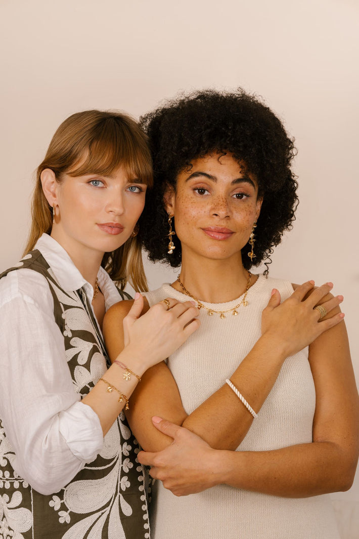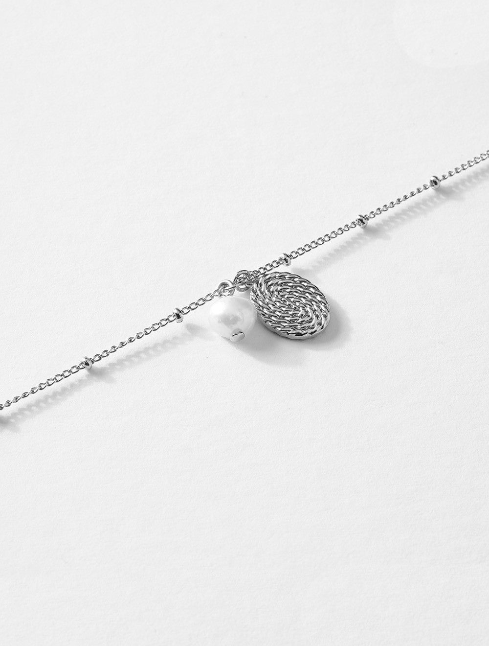Les boucles d'oreilles argent sont féminines et gracieuses. La ligne Cabestan est discrète, sublimée de perle blanche. Sur cette ligne, un mélange de perles baroques d'imitation et de médailles matiérées. Elégance et modernité pour ces pièces intemporelles.
