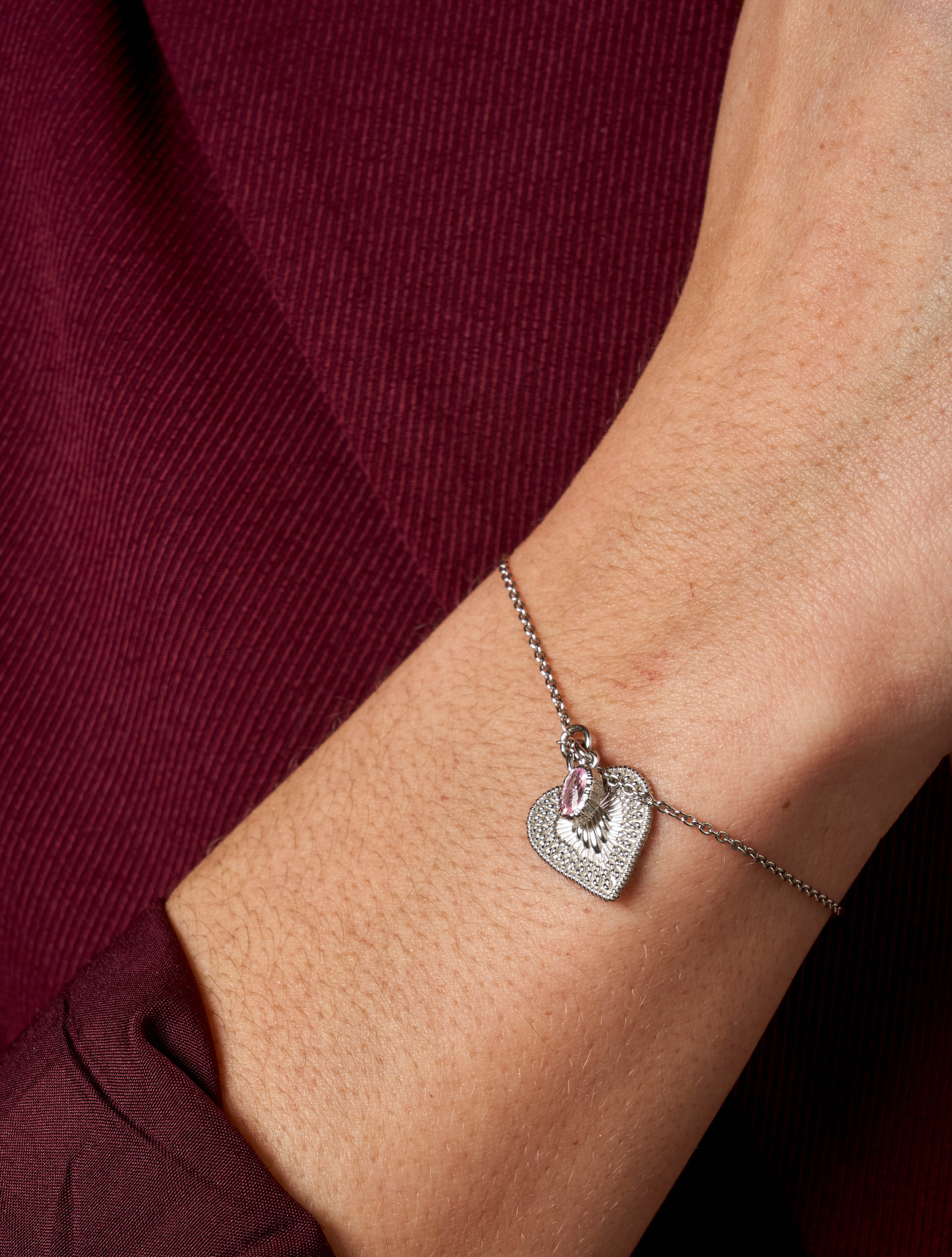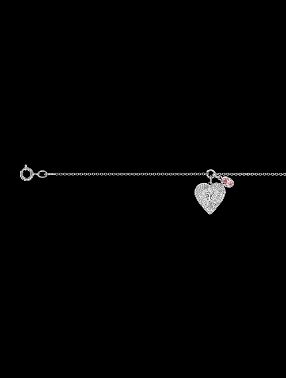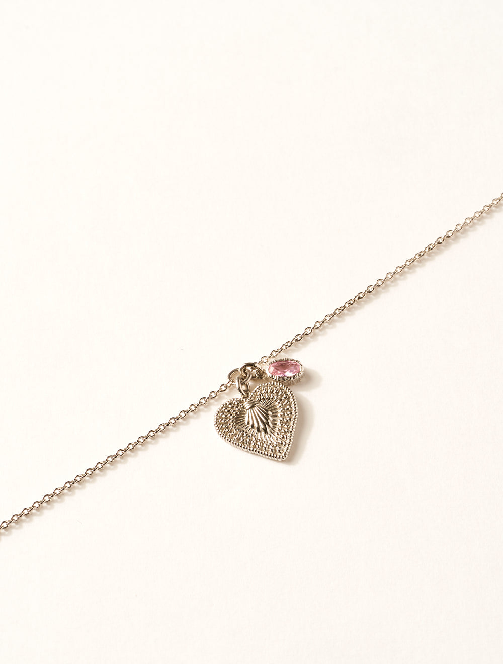 La ligne est inspirée du cœur Ex voto, très tendance cette saison. Nos stylistes ont travaillé à partir de papier tressé pour mettre en valeur les jeux de trames et de nouages caractéristiques du tissage. Le cœur est délicatement orné d'une pampille en oxyde.