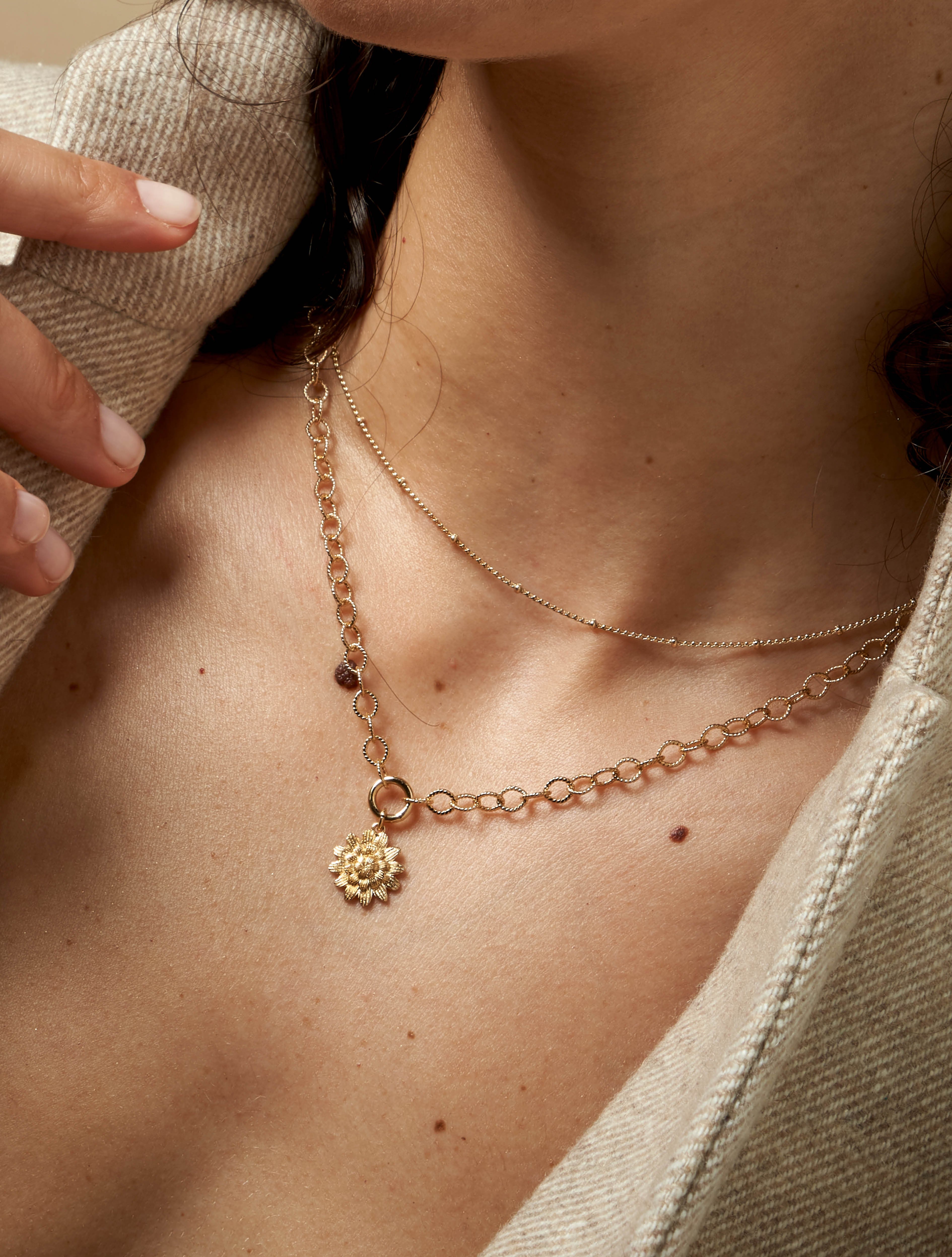 La ligne Origami est une ode au plissé soleil, où se juxtaposent et se superposent une multitude de plis révélant un jeu d'ombre et de lumière. Origami se démarque par son volume et la beauté des détails. La chaine originale du collier et du bracelet mettent en avant tous les détails de la ligne.