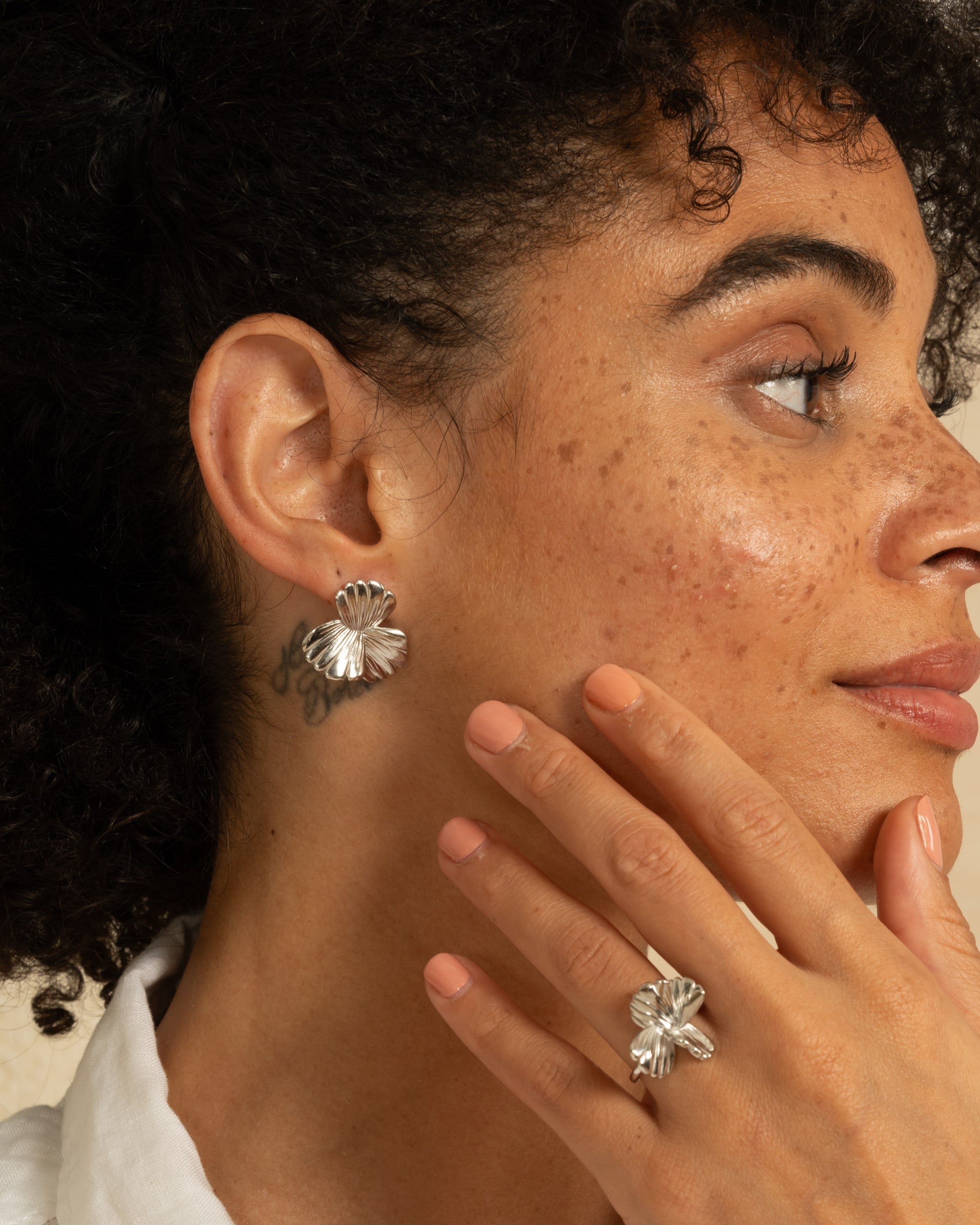 Puces d’oreilles texturées inspirées des pétales du coquelicot.